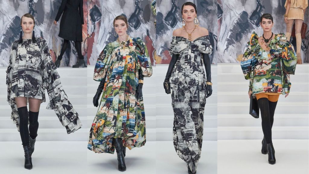 Costelloe’s in-house family team created a narrative print, portraying the modern day equestrian world in colour and also monochrome. This was displayed on dresses, trousers and blouses as well as scarves.