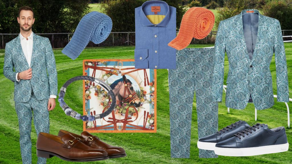 Take a bold sartorial step further with a patterned suit such as Simon Carter’s Blue Paisley Jacket (was £475.00 now £237.50) with matching Blue Paisley Trousers (£225.00) which will ensure you fashionably stand out from the crowd. If the suit is way out of your sartorial comfort zone, wear the jacket with a pair of smart dark blue jeans or the trousers with a plain blazer. You will still look dapper. Team with a white shirt such as Simon Carter’s Plain Linen Shirt White (£125.00) or their more casual light denim blue shirt Blue/Yellow Linen Shirt (£165.00) – this way the shirt lets the suit be the centre of attention. A tie is not essential but if you prefer wearing a tie, go for simple such as Blue Knitted Silk Tie or a contrasting Arancia Knitted Silk Tie Both £75.00. Accessorise with Jacob Sodalite Bracelet £65.00 and Horse Silk Pocket Square £65.00