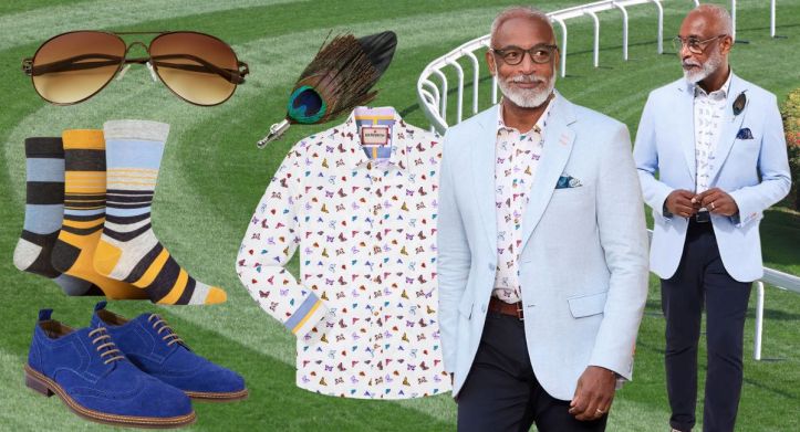 You may feel butterflies watching your horse race so why not have them on your shirt. Brilliant Butterfly Shirt £40.00. Step boldly to the bookmakers in Double Stitched Suede Brogues in cobalt blue £65.00 and SOCKSHOP Comfort Cuff Bamboo Striped Socks in blue jay stripes £8.99 Finish off your look with Joe Browns’ Classic Aviator Sunglasses £25.00