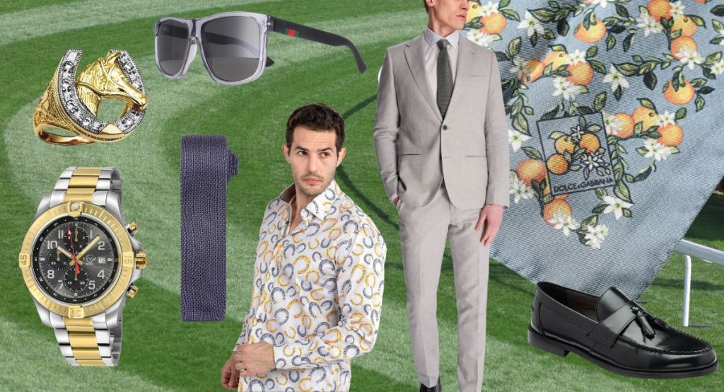 Switch your usual mid or dark grey suit for a lighter summery grey with Harry Brown London’s Giacomo Slim Fit Cotton Linen Suit Jacket £139.00 and matching Giacomo Slim Fit Cotton Linen Suit Trousers £79.00 Both crafted in cool and breathable blend of 70% Cotton and 30% Linen. Make a fashion statement with a bold print shirt and why not give a nod to the horses with CLAUDIO LUGLI’s Horseshoe Equestrian Print Shirt Grey and gold horseshoes on a white background. £95.00. Team with a plain dark grey Slim Knitted Tie by Premier Was £23.00 now £22.00 Add a touch of designer wear with Orange Blossom Print pocket square by Dolce & Gabbana Crafted from 100% pure silk and features an all over print of oranges and orange blossoms on a grey background. Was £209.00 Now £173.00