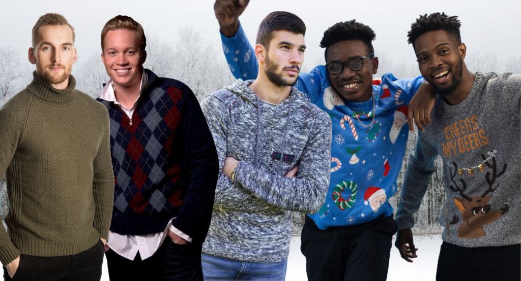 Chunky or fine – this will depend on the rest of your outfit. Fine knitwear is good for layering – over a shirt and/or underneath a suit jacket/fitted blazer. The heavier yarn is best as a stand alone underneath a thick jacket, coat or puffer jacket. Choosing wool is best for the cold weather, as is breathable and warm. Roll/polo necks will help keep your neck warm. Christmas jumpers can add fun and colour to your look.
