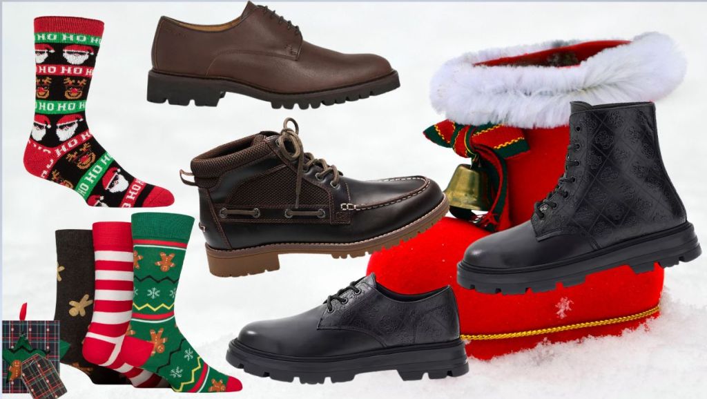 Whether you choose a boot or shoe, put your best winter foot forward. For the casual look Lands’ End Leather Lace-Up Lug Boots have a slip resistant lugged sole will keep you on your feet. In Espresso brown £119.00. The rugged combat boot works well with jeans and trousers in a heavier fabric such as tweed and wool. However a smarter version such as GUESS® Garda Combat Boot can also make a modern statement when worn with a suit at an informal event like a day at the races. The polished black leather, the snug fit around the ankles and the decorative embossed logo print gives a more sleek look than the rugged combat boot. £125.00. If you prefer to wear shoes with your suit or jeans, GUESS® Garni Lace-Up Moccasin is a good option due to its thick rubber sole. It is a sturdy shoe for the colder and wet weather. In black and embossed with the Guess logo. £125.00. A versatile shoe style is the Derby which can be worn with jeans or suits. Hackett’s Sloane Derby Shoe in conker brown has a leather lining and insole for comfort, plus a Vibram rubber outsole. Vibram soles were originally designed for mountaineering and so are highly regarded for their durability and traction. No mountains to climb at the races, just high hopes in winning. £230.00. Another way to be in the festive spirit is to wear Christmas socks. Get sweet with 3 Pair SOCKSHOP Wildfeet Cotton Christmas Socks featuring gingerbread men. Lightweight £9.99 For thicker boot socks go for SOCKSHOP Heat Holders 1.6 TOG Lite Christmas Socks in a cosy medium thickness that has been knitted from Heat Holders’ thermal yarn. Designs include snowmen, snowflakes, stag’s heads, candy canes and gingerbread men. £8.99.