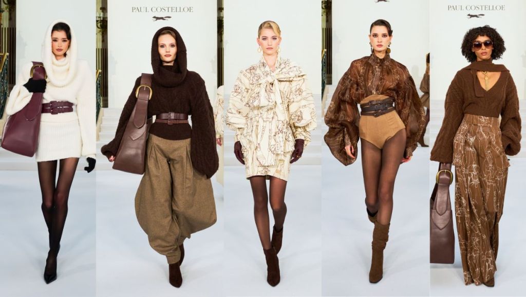 Continuing his father’s fashion legacy, William Costelloe presented his debut collection as Creative Director of the Paul Costelloe brand. In honour of his father and the fashion house he created, William kept the Paul Costelloe brand’s DNA of fine tailoring and heritage fabrics whilst signalling fresh beginnings from hand sculpted florals of the same fabrics adorning jackets to a classic version of the hoodie with oversized collars sweeping over the head.